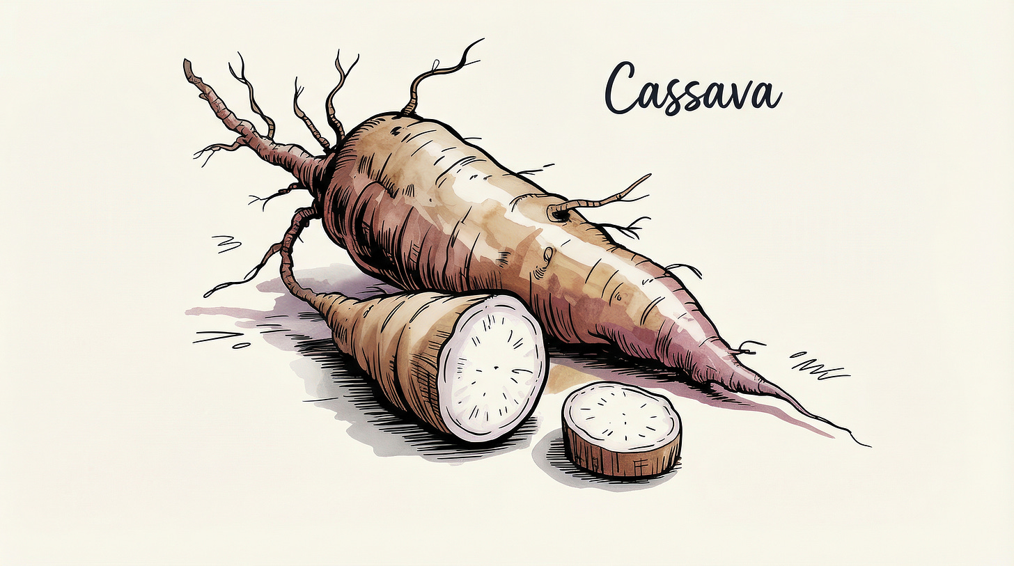 Cassava feeds more than 800 million people on this planet.¹ It’s a vital carbohydrate source, particularly in Sub-Saharan Africa, where it provides more calories per hectare than most other staple crops.² The tubers can stay in the ground for up to three years without spoiling, making it a critical food security crop.³