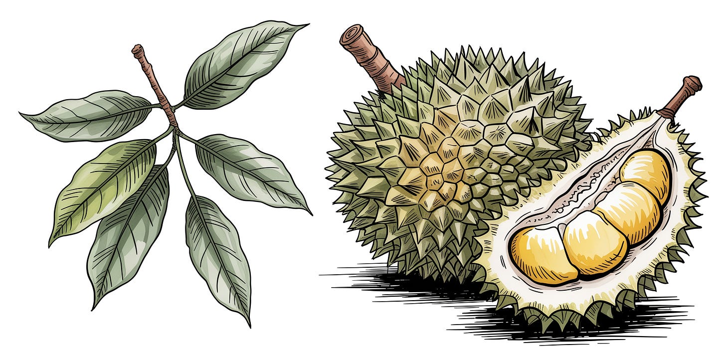 In many parts of Southeast Asia, it’s considered the king of fruits. Because even though it smells absolutely horrible, it tastes kinda like vanilla pudding. Or almond gelato. Or rich cream cheese with hints of caramel. Descriptions vary, but everyone agrees the flesh is buttery, custard like, and completely different from what the smell promises.²