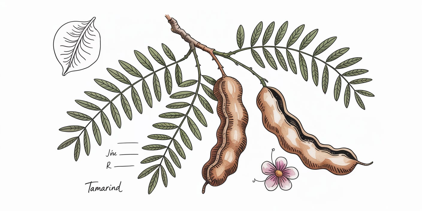 The sticky part on the inside tastes like a mix of lemon and caramel. Sour and sweet at the same time. That’s why it’s so commonly used in Indian dishes. In India, tamarind is a foundational flavor. It goes into sambar, rasam, chutneys, curries. It acts as a preservative, a cooling agent, and even a remedy for the itchy mouthfeel you get from eating certain tubers like yam and taro. There’s a saying that tamarind is so central to South Indian food that if you grow up there, you start eating it before you can walk. Actually, that’s not a saying. I just made it up. But it might as well be true.